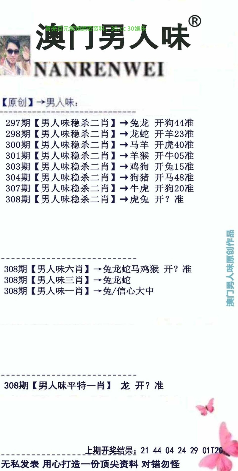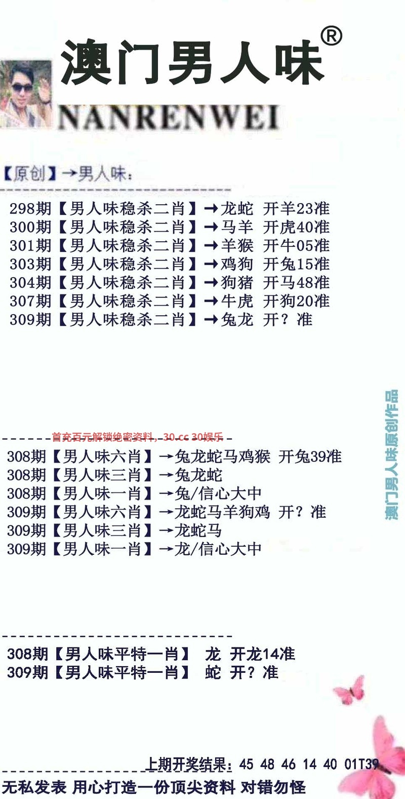 306期-绝杀二肖『羊+蛇』开:牛17