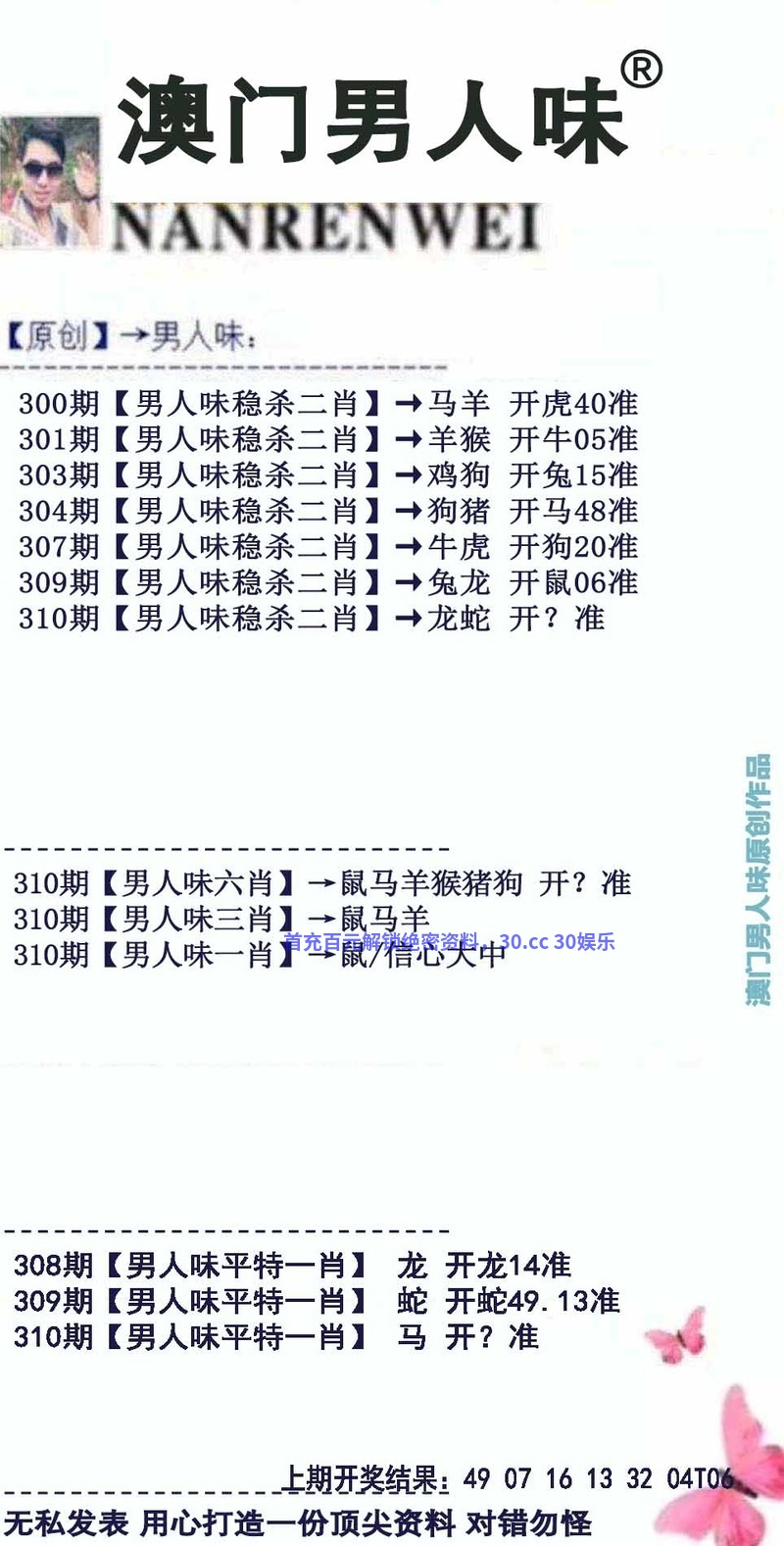 307期-绝杀二肖『鼠+狗』开:狗20错